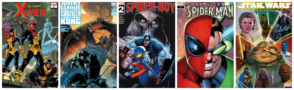 Justice League Vs. Godzilla Vs. Kong #3; Original X-Men #1; Spider-Boy #2; Superior Spider-Man #2; Star Wars Revelations #1