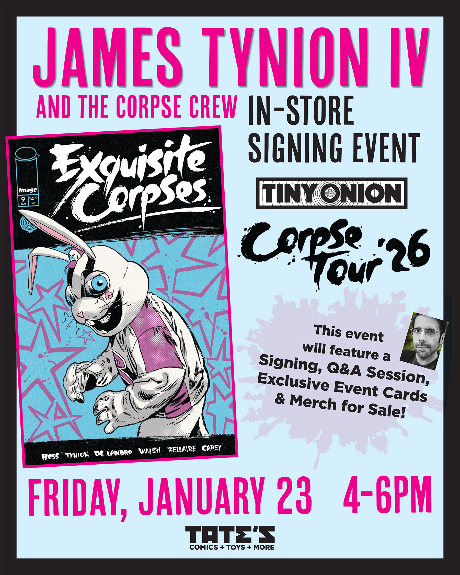 Join James Tynion IV and the Corpse Crew on an Exquisite Corpses Signing Tour, celebrating the release of Issue 9! Event will feature a Signing, Q&A Session, Exclusive Event Cards and Merch for Sale!