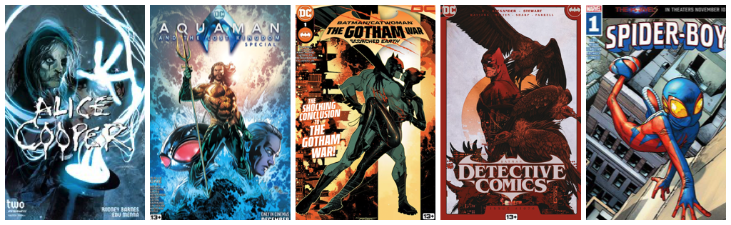 Alice Cooper #2; Aquaman and the Lost Kingdom Special #1; Batman/Catwoman The Gotham War Scorched Earth #1; Detective #1076; Return of Superman 30th Anniversary Special #1