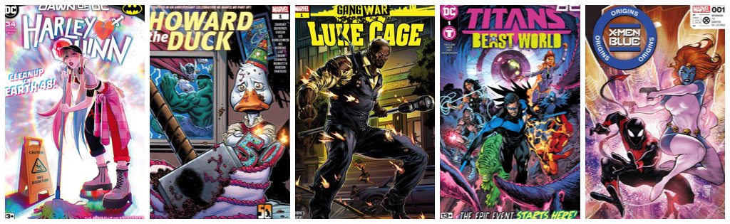 Harley Quinn #34; Howard The Duck #1; Luke Cage: Gang War #1; Titans: Beast World #1; X-Men Blue: Origins #1