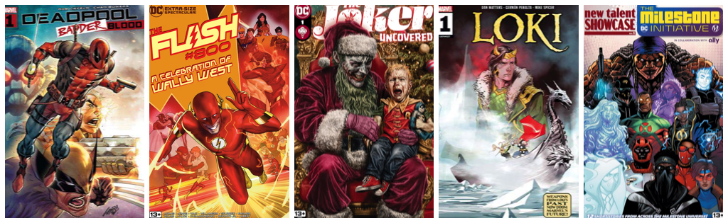Deadpool: Badder Blood #1; Flash #800; Joker Uncovered #1; Loki #1; New Talent Showcase: The Milestone Initiative #1