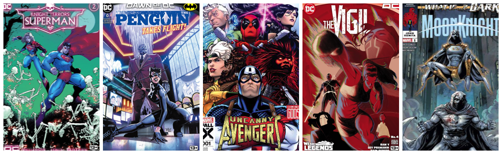 Knight Terrors Superman #2; Penguin #0; The Vigil #4; Uncanny Avengers #1; What If… Dark Moon Knight #1