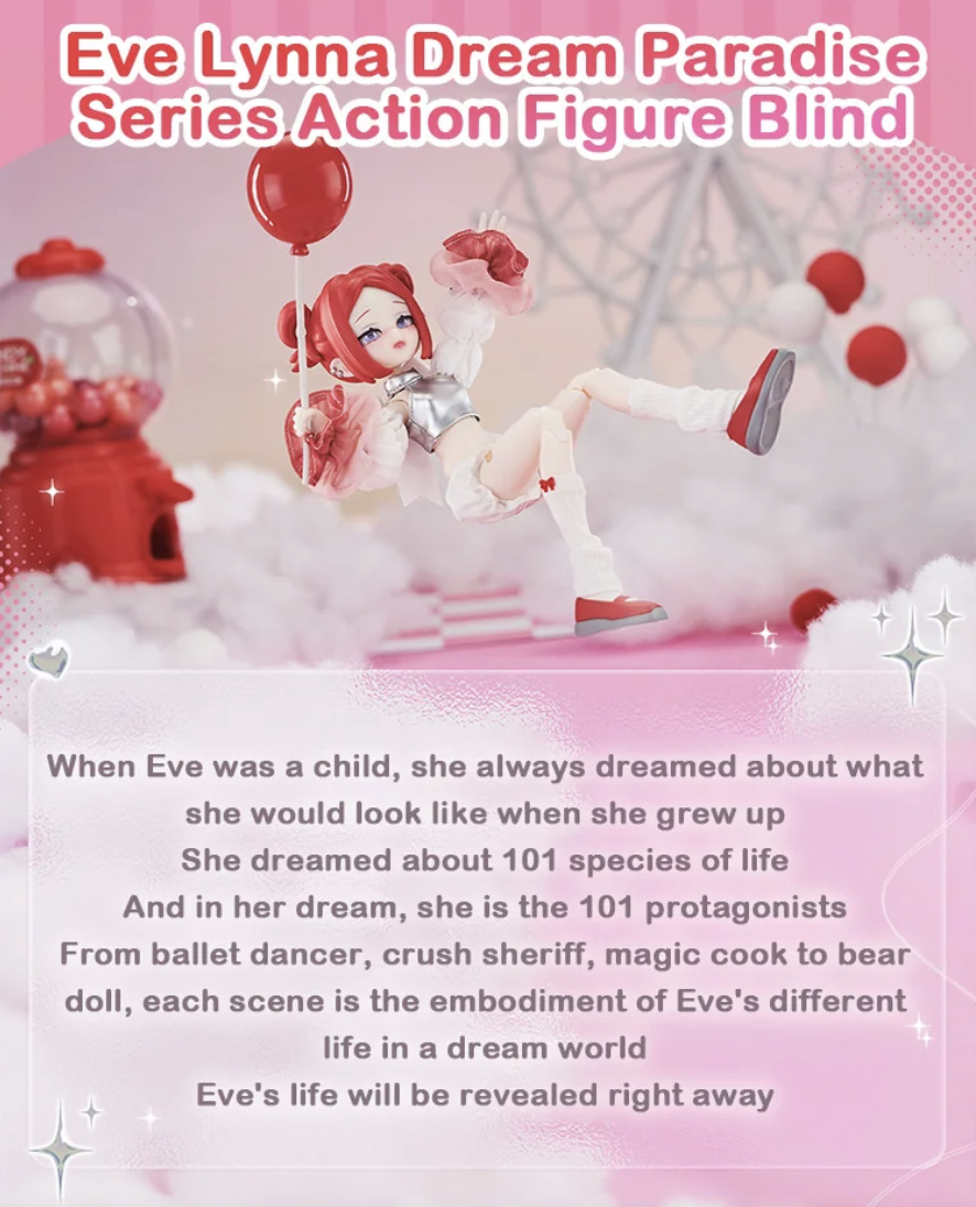 Eve-Lynna Dream Paradise Series. 6 regular figures and 2 hidden editions to collect. Enjoy the exciting moment of unboxing!