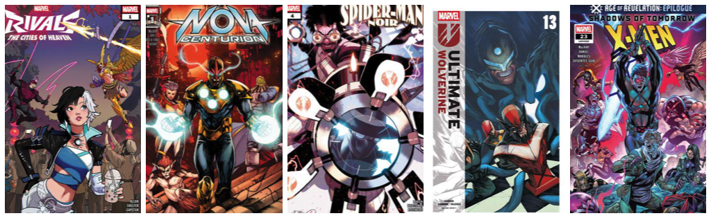 Marvel Rivals; The Cities of Heaven #1; Nova Centurion #3; Spider-Man Noir #4; Ultimate Wolverine #13; X-Men #23