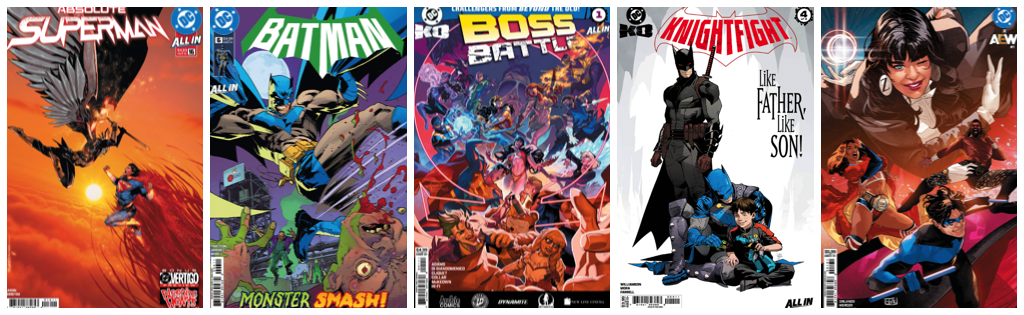 Absolute Superman #16; Batman #6; DC KO: Boss Batte #1; DC KO: Knightfight #4; DC x AEW #1